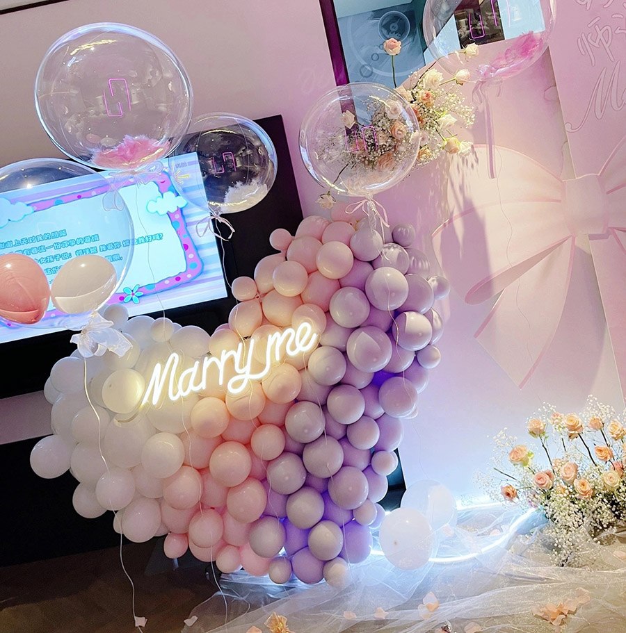 每一个粉色气球都代表我对你的爱意,嫁给我
