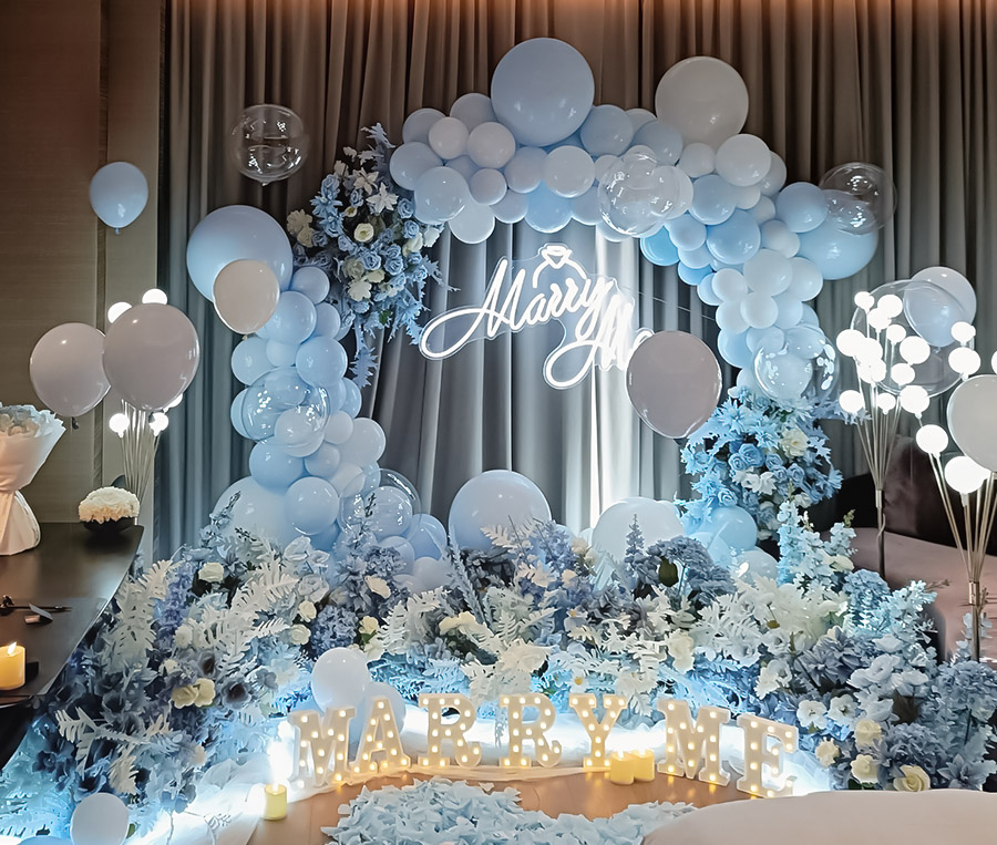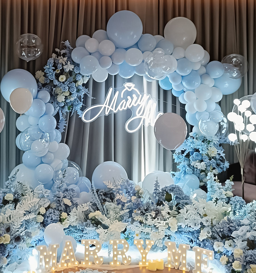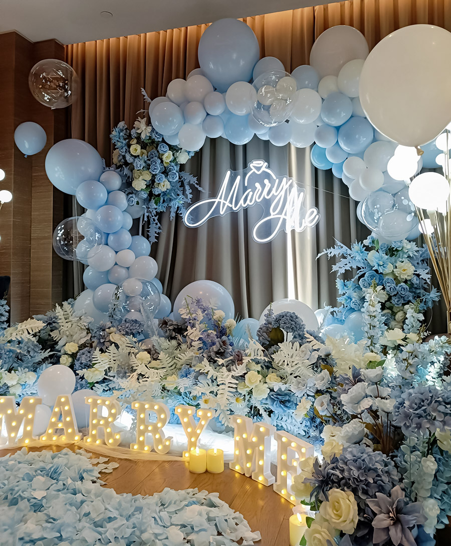 马卡龙浅蓝气球求婚布置蓝色系求婚marry me
