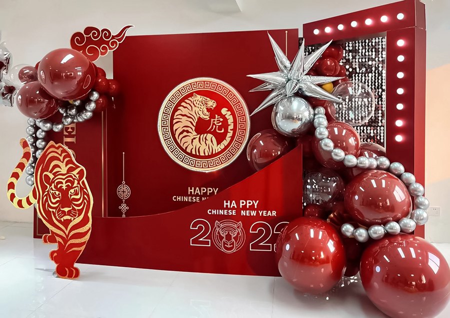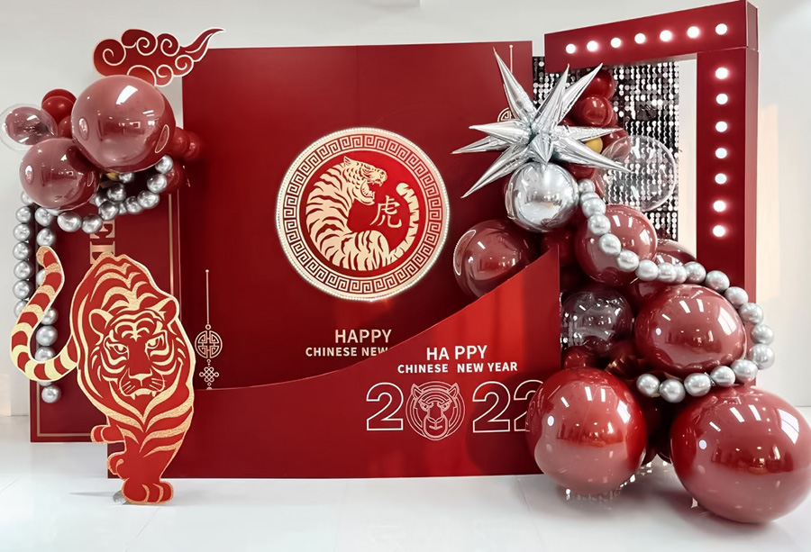 公司22周年庆典仪式非常喜庆的气球背景布...