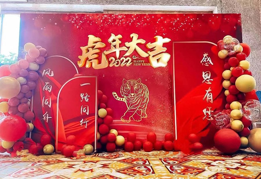 公司22周年庆典仪式非常喜庆的气球背景布...