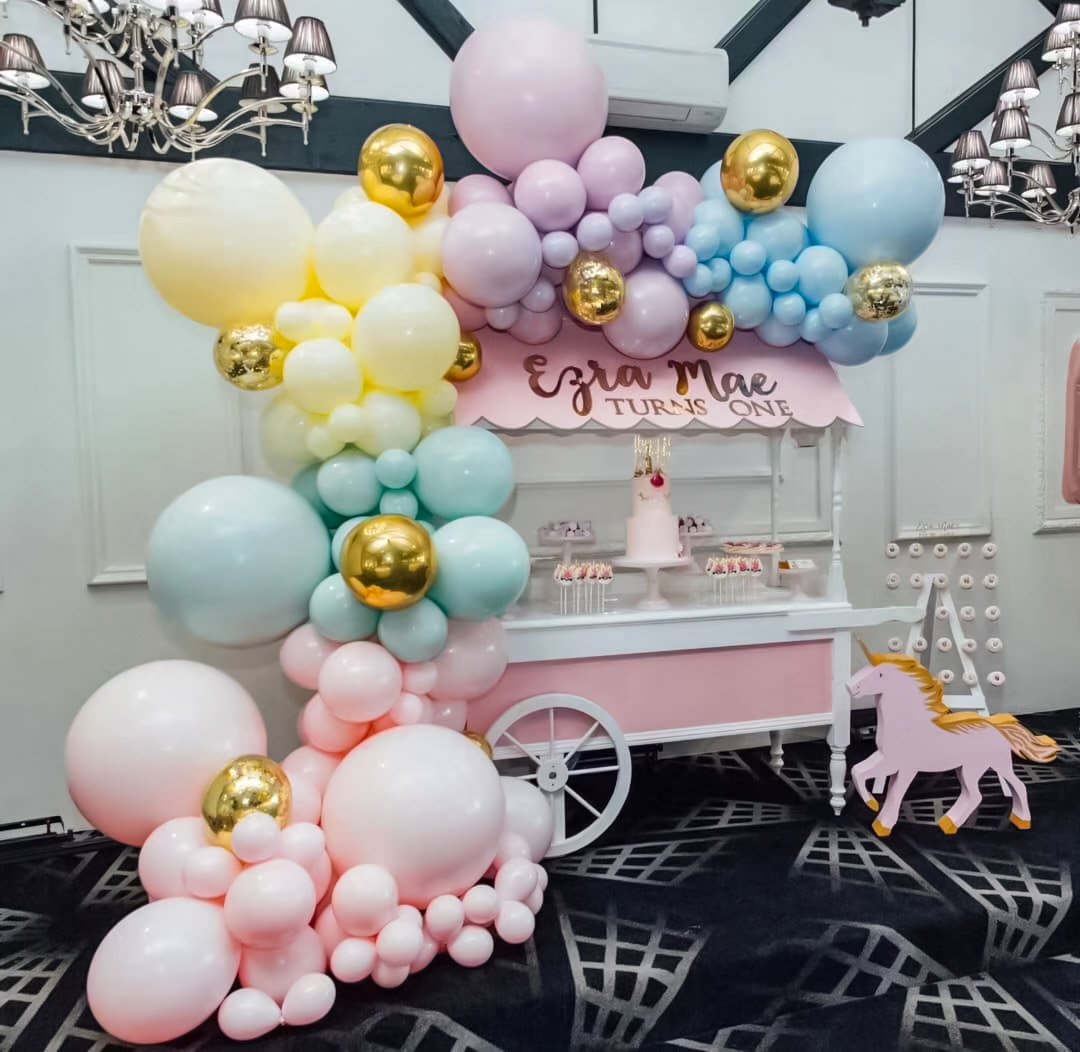 马卡龙主题宝宝生日派对 甜美梦幻的气球布...