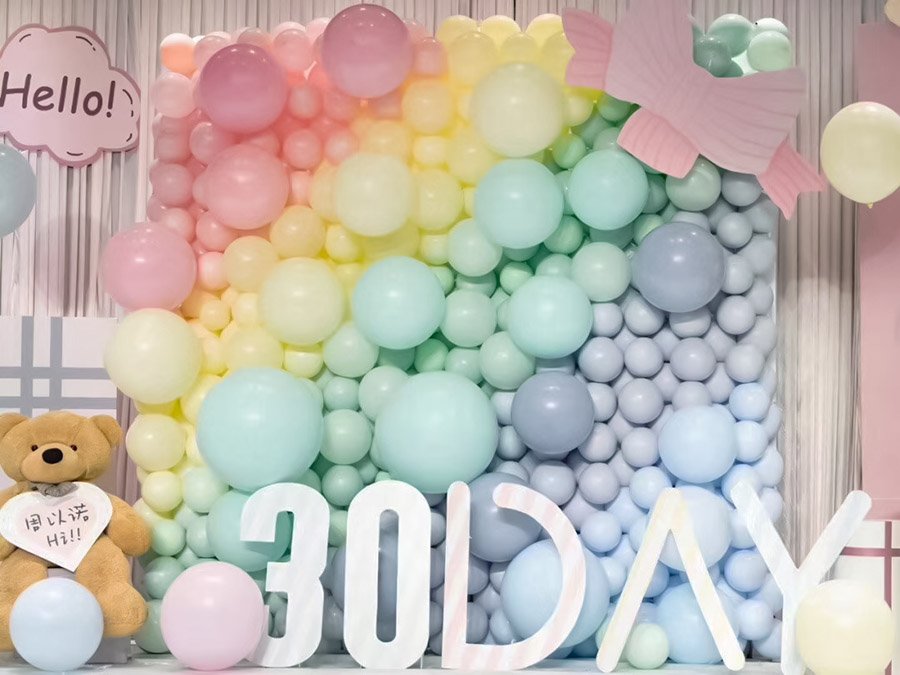 女宝宝百日宴小清新气球布置个性化气球设计