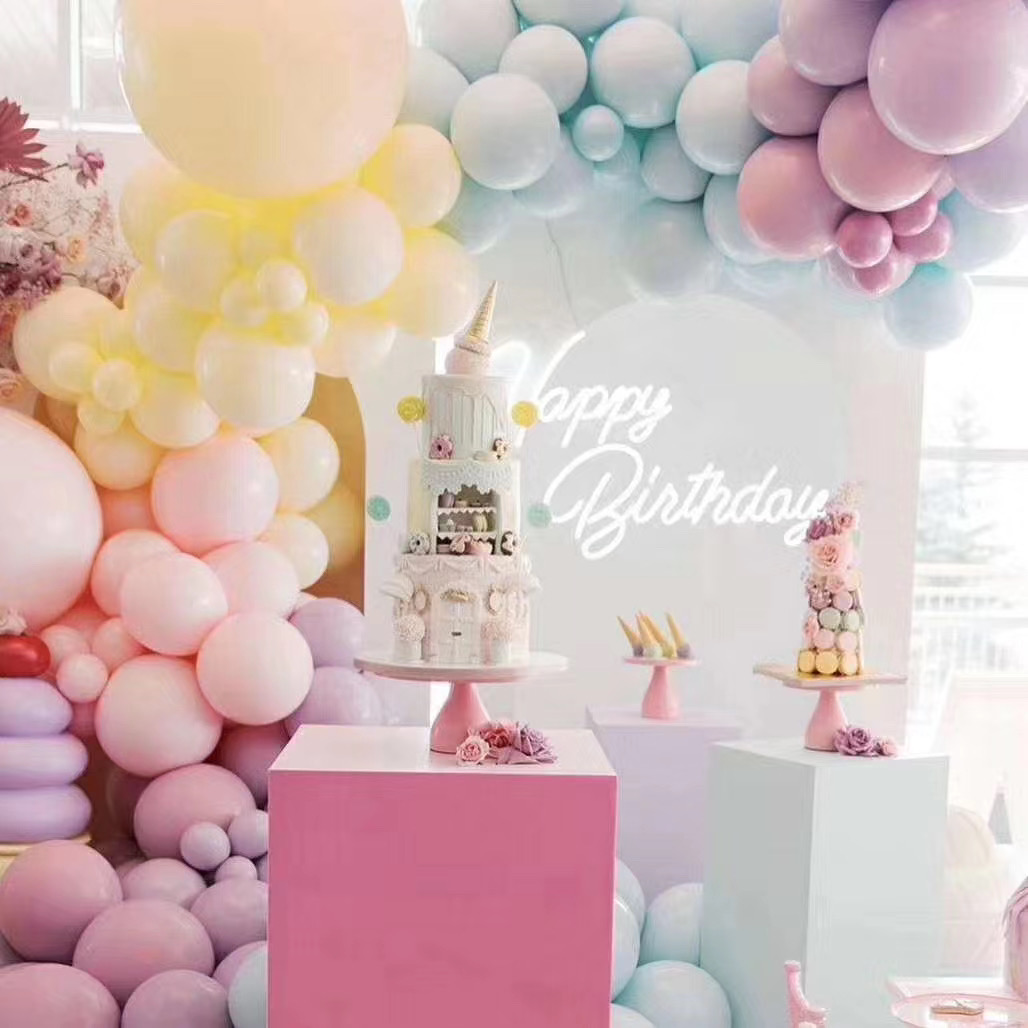 女宝宝2岁生日多彩马卡龙缤纷气球装饰...