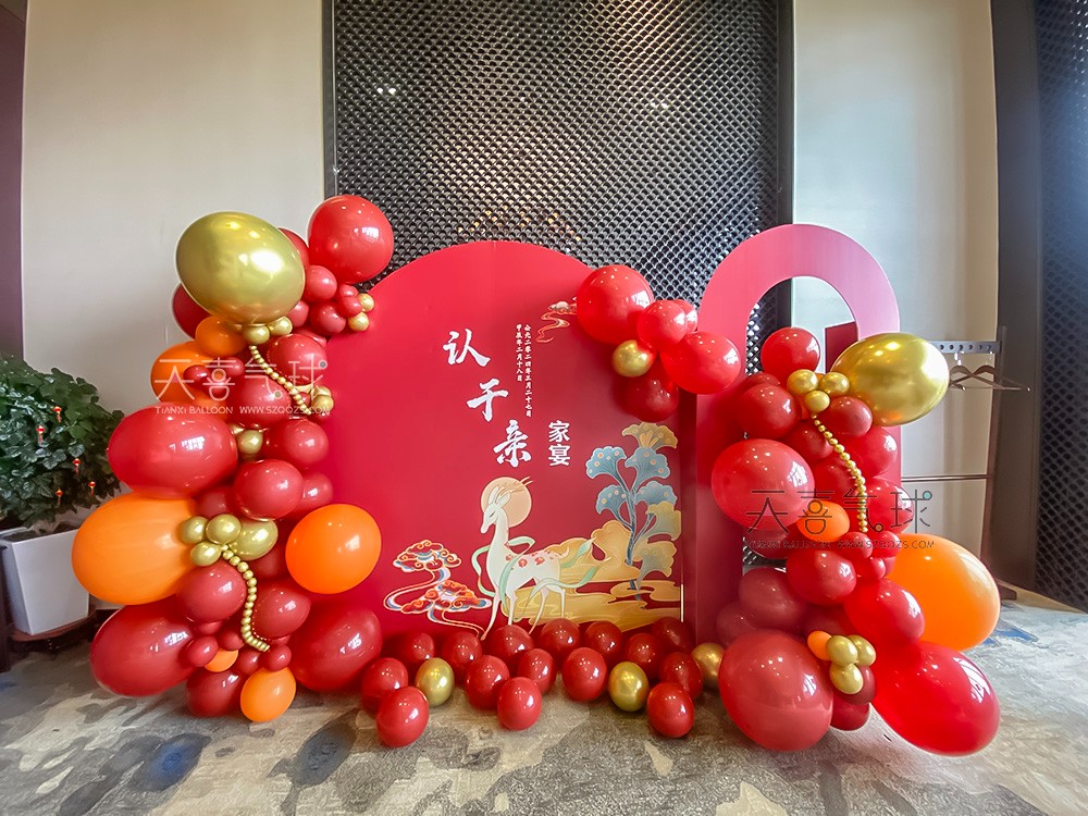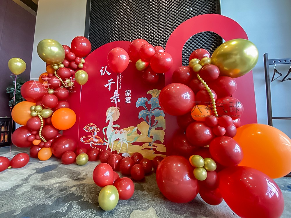 🎈 精美气球装饰为了增添宴会的欢庆气氛,我们特别设计了气球背景墙,选用了金色、红色和橙色气球,既象征着吉祥如意,也营造出热烈的庆祝氛围。